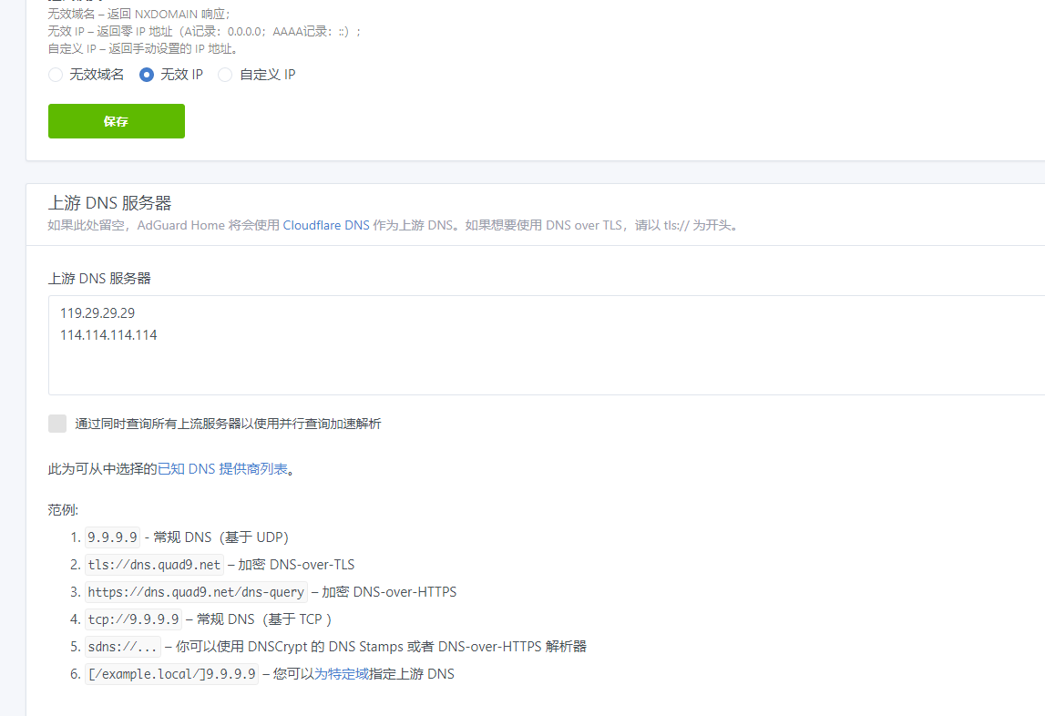 AdGuard Home默认使用Cloudflare DNS作为上游服务器,如果您服务器在国内可能请求上游DNS延迟比较高,在后台 - 设定 - 可以设置为国内的DNS,如腾讯的119.29.29.29,但坏处是不支持DNS over TLS