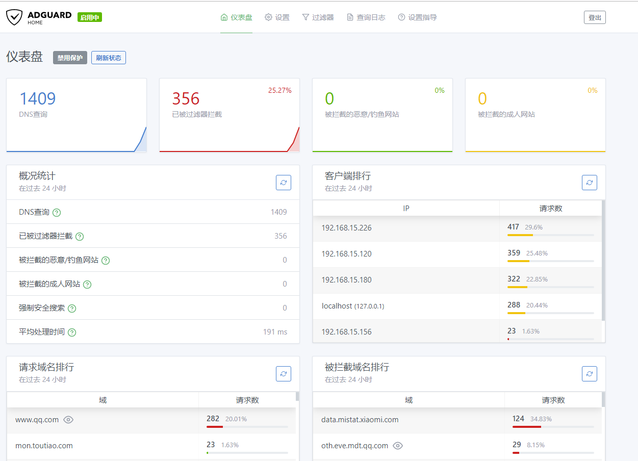 #启动 systemctl start AdGuardHome #开机自启 systemctl enable AdGuardHome #重启 systemctl restart AdGuardHome #停止 systemctl stop AdGuardHome