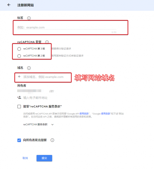 注册 recaptcha 秘钥。https://www.google.com/recaptcha/admin/